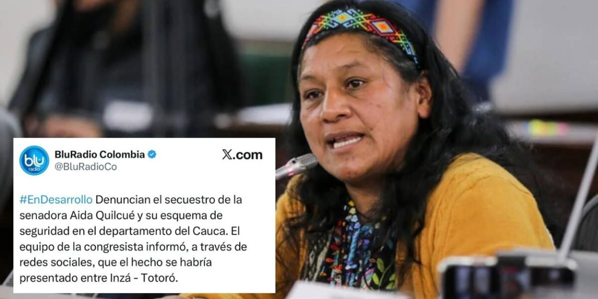 La senadora indígena Aída Quilcué, del movimiento MAIS y cercana al presidente Gustavo Petro, habría sido secuestrada este martes junto con su equipo de seguridad en la carretera Inzá-Totoró, Cauca, según denunció su equipo a través de X.