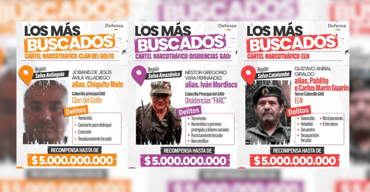 El ministro de Defensa, Pedro Sánchez, confirmó en su cuenta de X varios de los nombres de quienes son los más buscados por las autoridades colombianas y que ahora prioriza Estados Unidos, luego de la reunión del día anterior en la Casa Blanca entre el Presidente Gustavo Petro y Donald Trump.