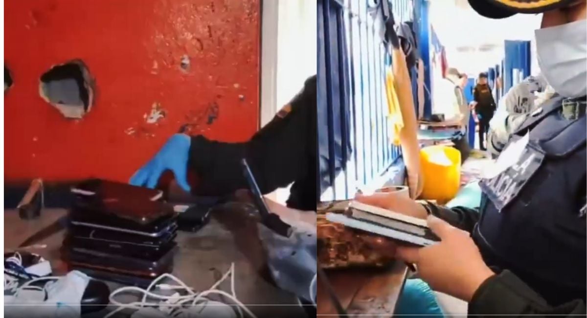 Según informe de las autoridades, esto permitió la incautación de 105 teléfonos celulares, tres módems, 53 tarjetas SIM, 23 directorios con datos de posibles víctimas, 100 accesorios electrónicos y 29 armas cortopunzantes.