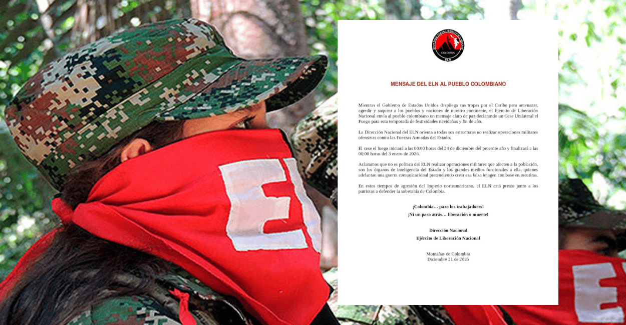 El panorama de seguridad en Colombia recibe un respiro agridulce. Apenas cuatro días después de finalizar un brutal paro armado de 72 horas que paralizó regiones enteras y cobró la vida de policías y civiles, el ELN emitió una orden a todas sus estructuras para suspender las operaciones ofensivas contra la Fuerza Pública durante la temporada decembrina.