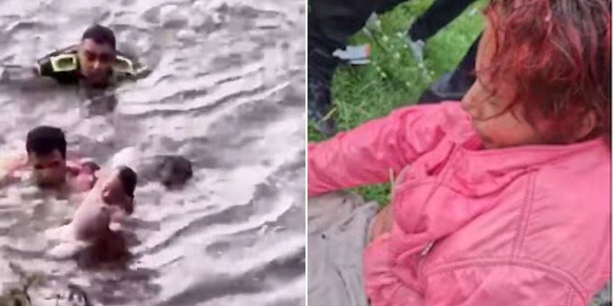 Una rápida reacción de los uniformados lograron socorrerlas a ambas. Las imágenes del angustiante rescate circulan en redes sociales.