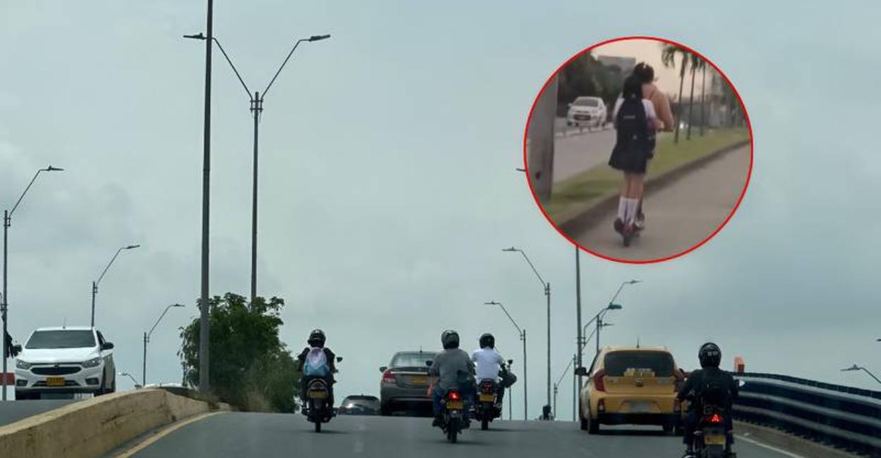 La Policía Nacional abrió una investigación interna después de que se viralizó un video que muestra a dos uniformados insultando a una madre y su hija mientras circulaban en una patineta eléctrica por un carril exclusivo para buses del MIO en Cali.