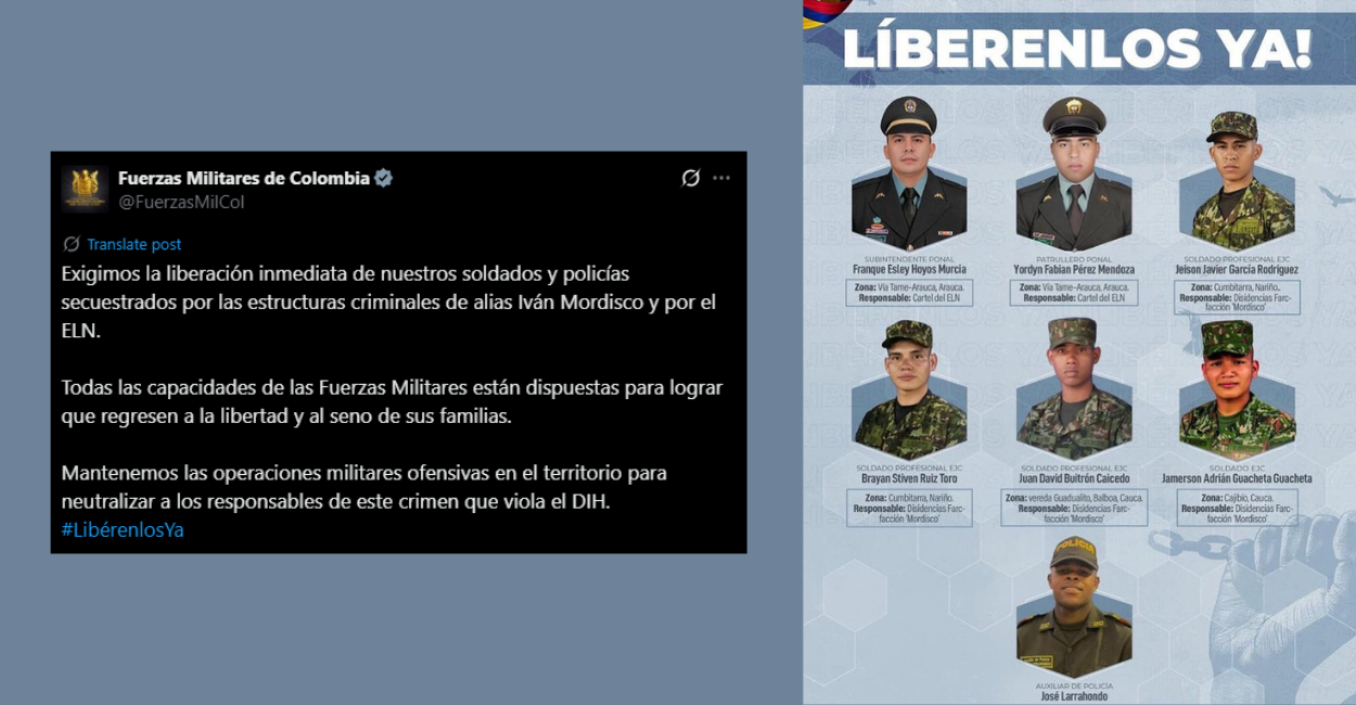 Las Fuerzas Militares de Colombia emitieron una alerta sobre la situación de seguridad en el país, confirmando que siete de sus integrantes, entre soldados y policías, están secuestrados por estructuras armadas ilegales.