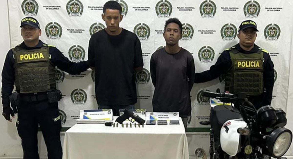 Los sujetos fueron detenidos en el barrio Soplaviento del municipio de Arjona, en Bolívar, portando un arma de fuego y varios celulares.
