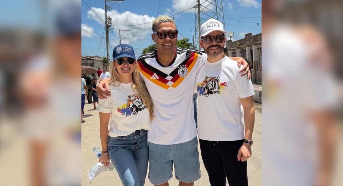 Este domingo, una foto compartida en las historias de Ana Lucía Pineda, esposa del candidato presidencial Abelardo de la Espriella, mostró al futbolista Teófilo Gutiérrez acompañado de la pareja recorriendo el popular barrio La Chinita en Barranquilla, lugar de origen del jugador.