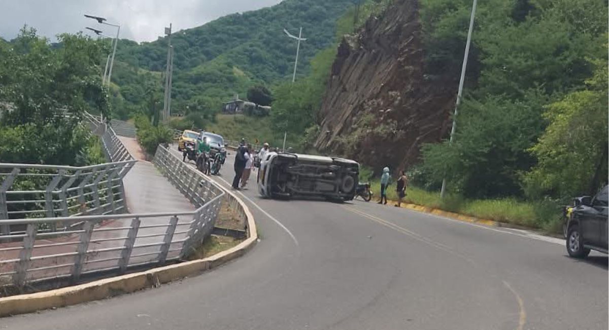 Una camioneta Mazda de placas CX30 de color blanco, terminó volcada sobre la vía. No obstante, las razones detrás del accidente aún son desconocidas.