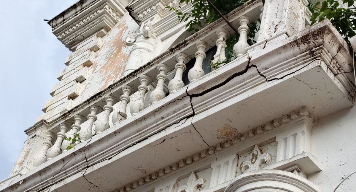 A través de redes sociales, se alertó sobre el riesgo inminente que se registra en el Centro Histórico, sobre la calle 16, por el estado el antiguo edificio del Concejo de Santa Marta.