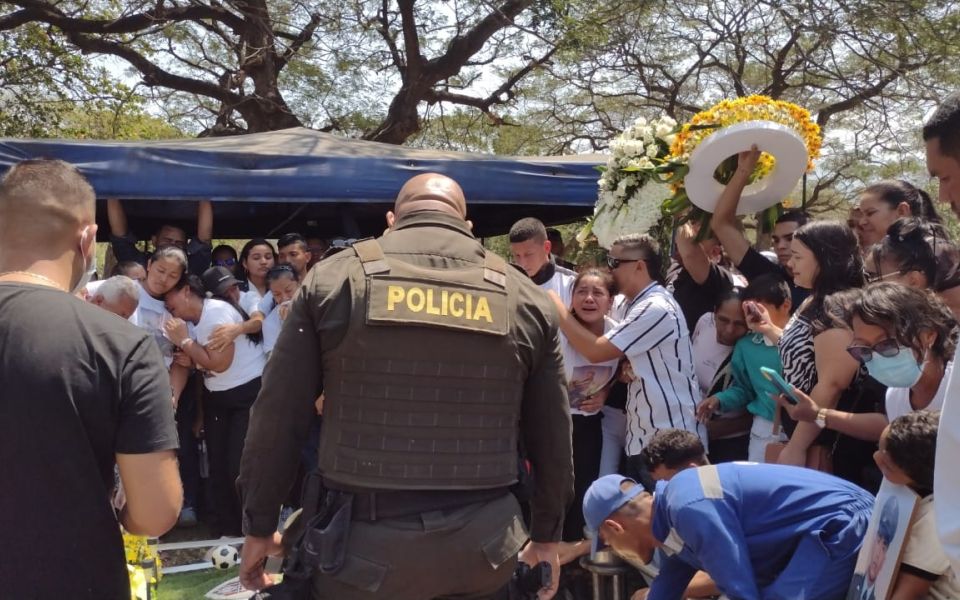 Familiares, amigos, compañeros de la Policía y ciudadanía en general se dieron cita para darle el último adiós a Fredy Joaquín en el cementerio Jardines de Paz.