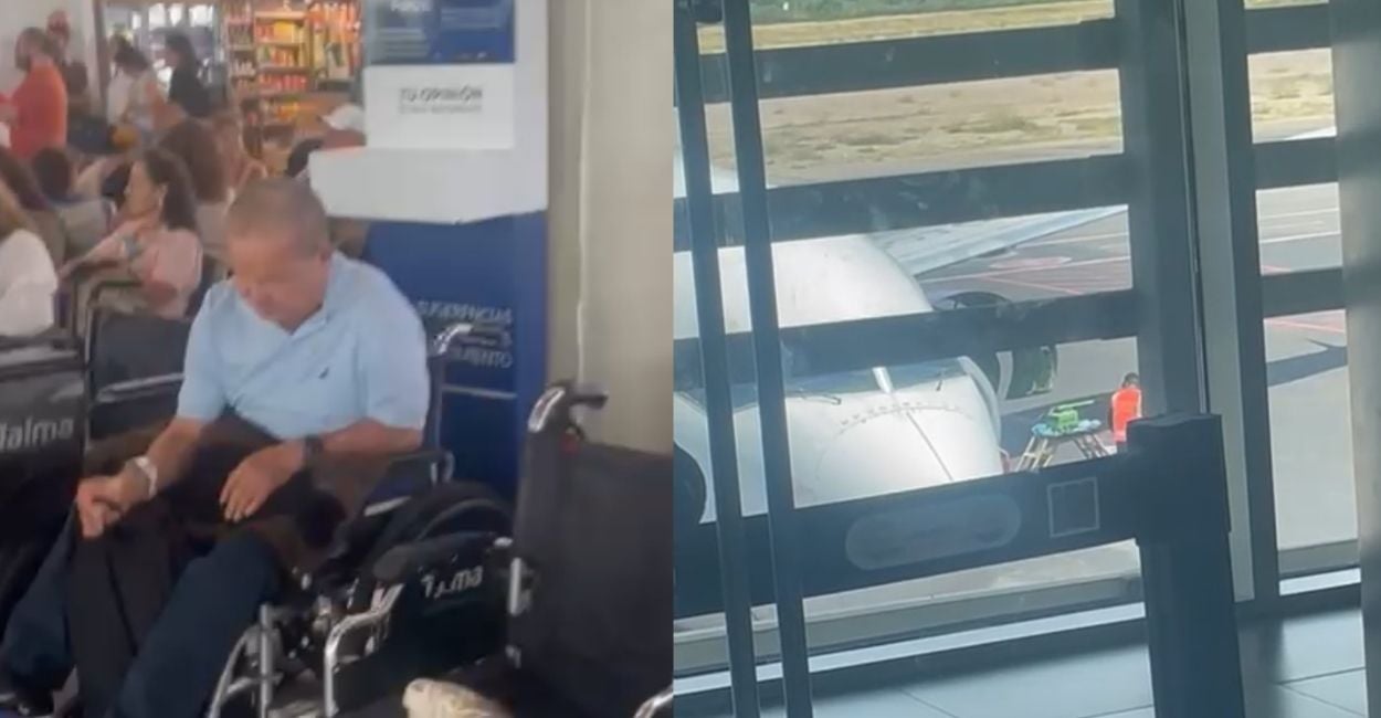 En las imágenes se observa a varios ancianos en sillas de ruedas aguardando en las salas, evidenciando el agotamiento físico tras pasar la noche y parte del día en el aeropuerto.