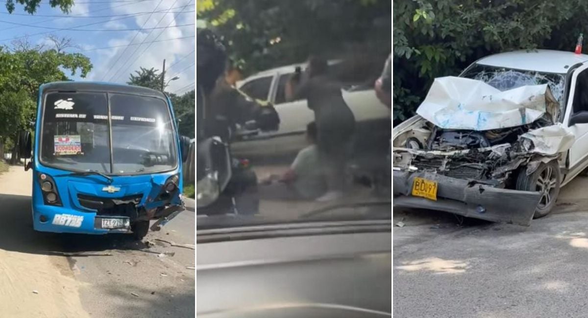 Fuerte choque entre una buseta y un vehículo particular deja tres heridos en Santa Marta