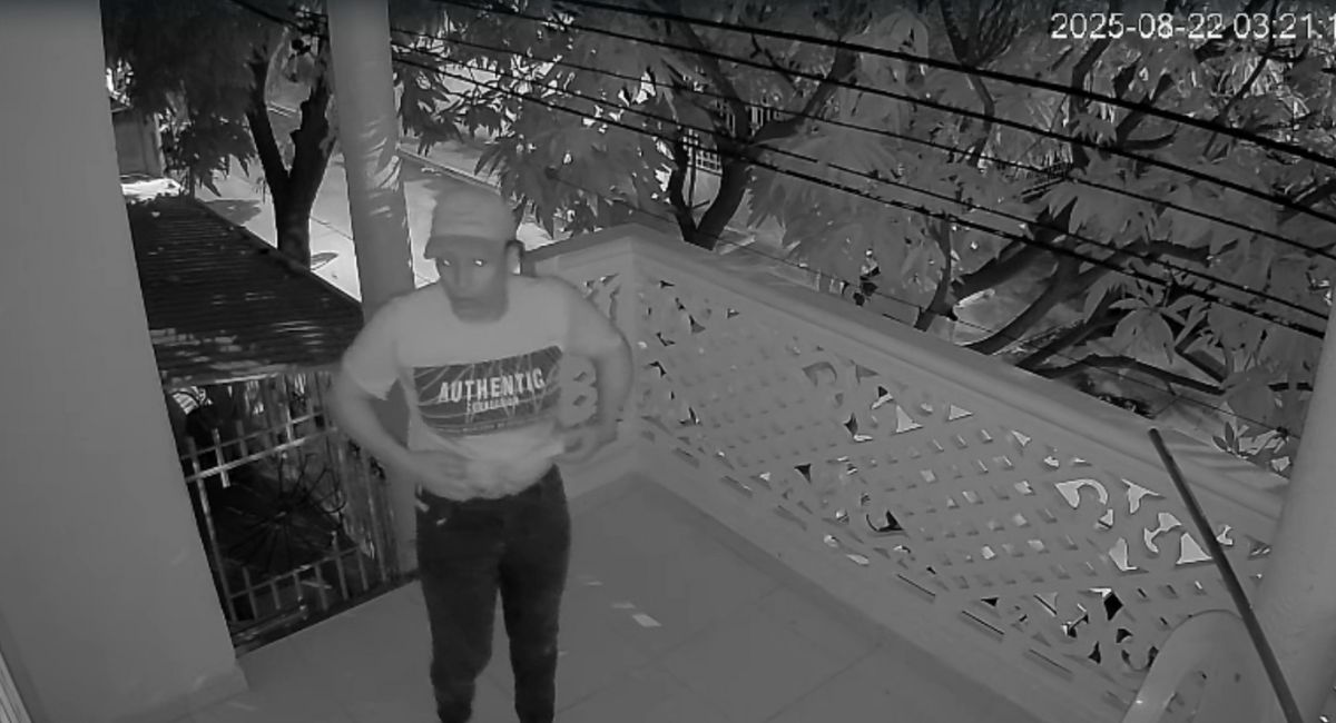 Las imágenes captadas por las cámaras de vigilancia, permiten ver cómo sobre las 3:20 de la madrugada de este viernes, un joven que vestía jean, camiseta y gorra, llega hasta la vivienda y tras varios intentos, finalmente logra pasar las rejas y subir al segundo piso.