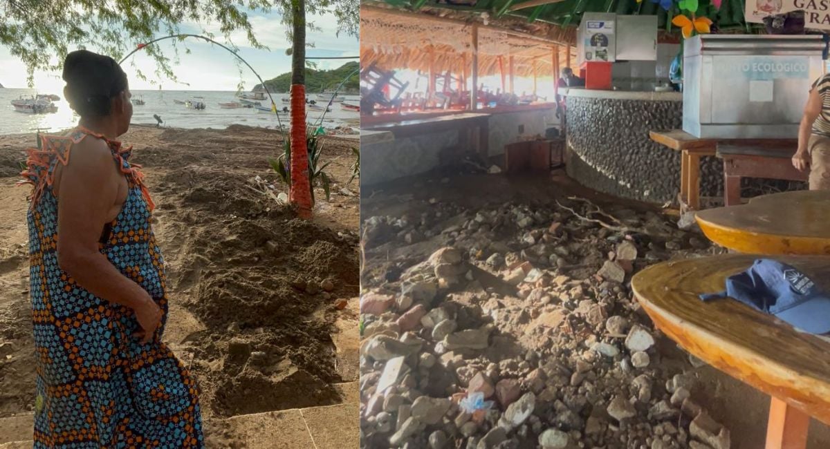 La fuerza del agua arrasó con mesas, sillas y electrodomésticos, dejando en ruinas el establecimiento del que dependen varias madres cabeza de hogar en Taganga.