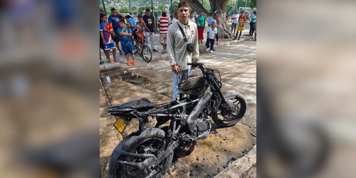 ¡Que tristeza! Joven domiciliario se le incendió su moto en Santa Marta