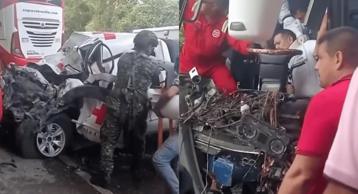 Samario quedó atrapado tras fuerte choque entre bus de Brasilia y carro de la Cruz Roja