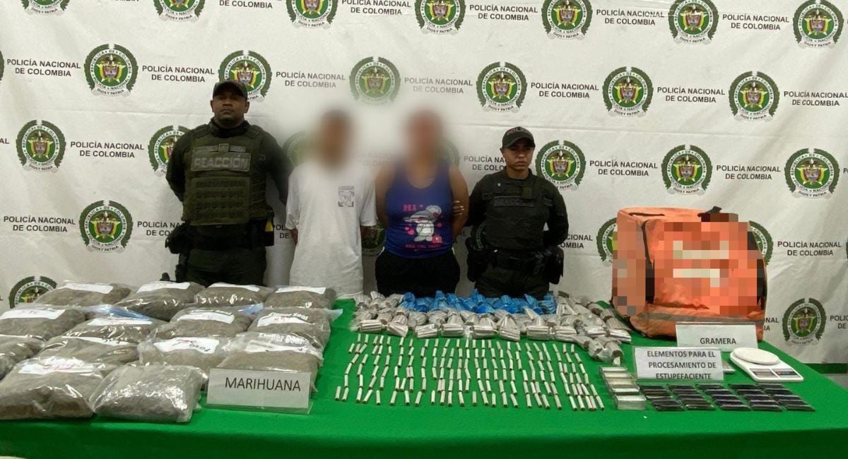 En el procedimiento se incautaron varios paquetes con cerca de 9 kilogramos de marihuana dosificada, además de elementos para su dosificación, una maleta de domicilios Rappi que, al parecer, era utilizada para transportar la sustancia.