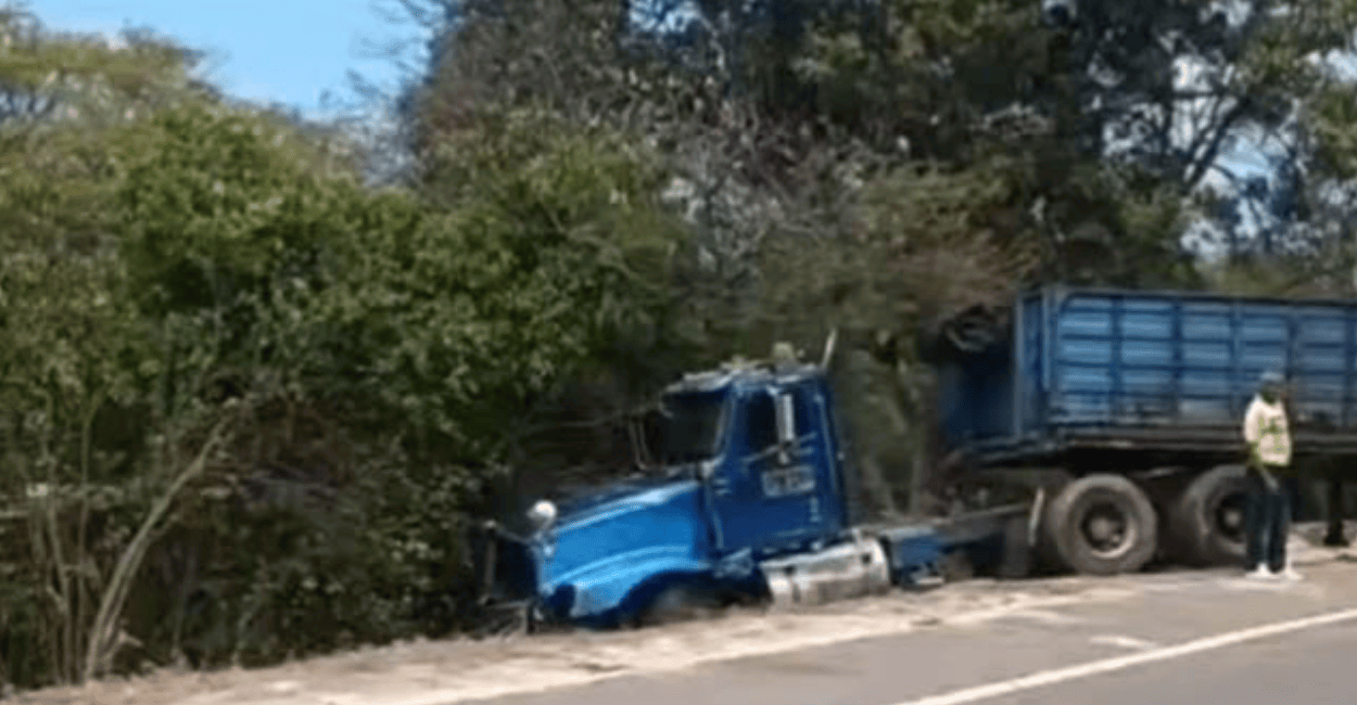 De acuerdo con el reporte oficial, el conductor del tractocamión perdió el control del volante por razones que aún están bajo investigación. El pesado vehículo se salió de la carretera y recorrió varios metros por la zona verde hasta impactar de frente contra un frondoso árbol, cuya solidez evitó que el camión continuara su marcha sin rumbo, pero provocó daños severos en la estructura de la cabina.