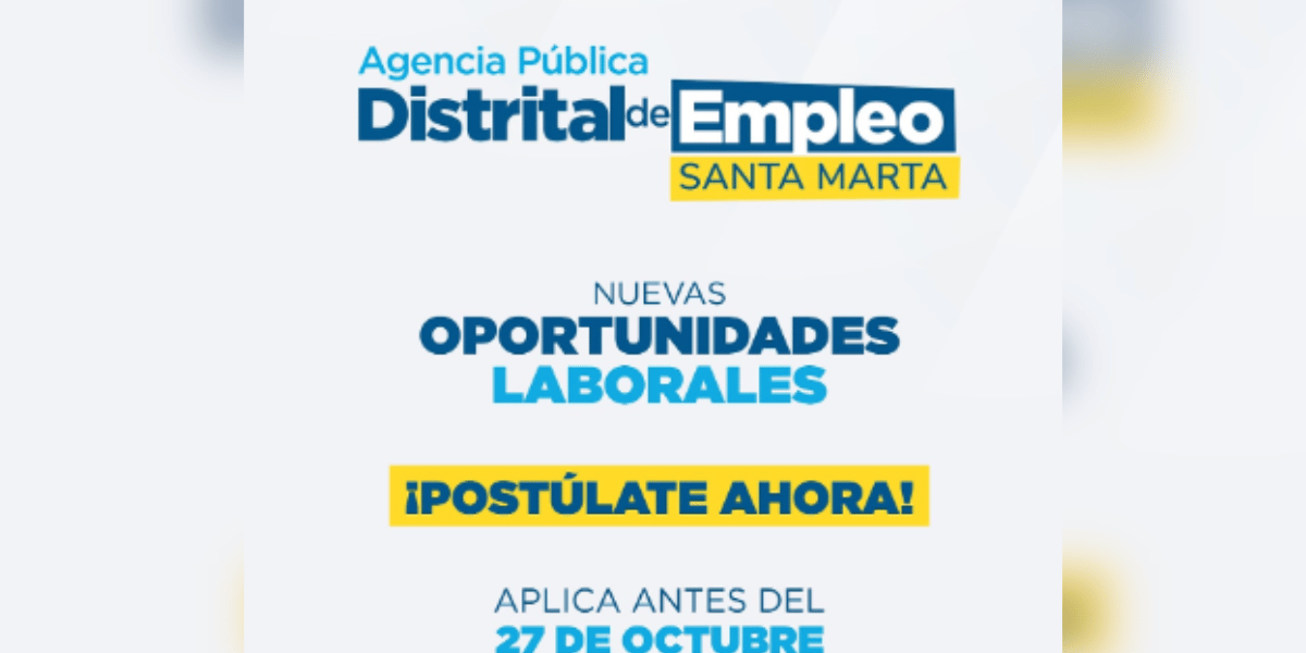Las postulaciones estarán abiertas hasta el 27 de octubre de 2025 y podrán realizarse de forma presencial en la Agencia Pública Distrital de Empleo, ubicada en la Casa Gauthier (Calle 15 #3-67), o mediante pre-registro en el enlace disponible en la biografía de las redes oficiales de la dependencia (@desarrollosmr).