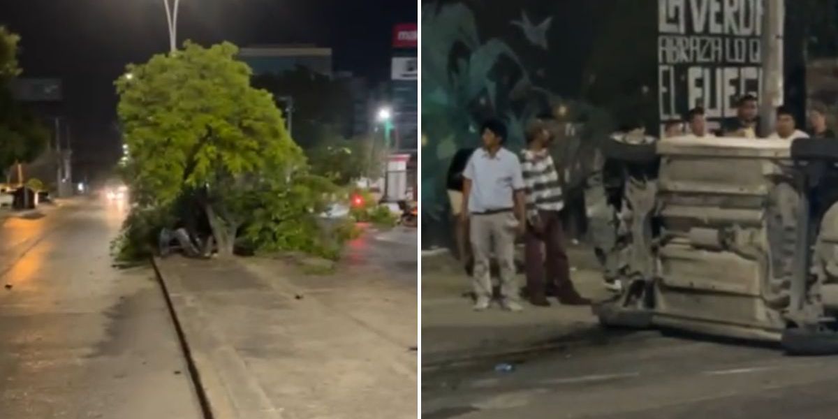 En horas de la noche de este miércoles 10 de abril, un fuerte accidente de tránsito se registró en la Avenida del Ferrocarril, cuando un vehículo chocó violentamente contra un árbol.