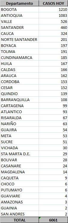 En cuanto a casos, en el país se diagnosticaron 6.061 nuevos pacientes con el virus, de los cuales 43 se presentaron en el departamento: 29 en Santa Marta y 14 en municipios.