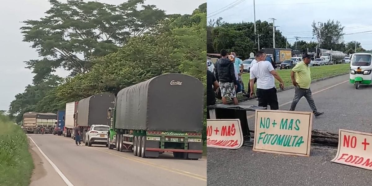 Conductores bloquean la vía Ciénaga - Santa Marta por cámaras de fotomultas