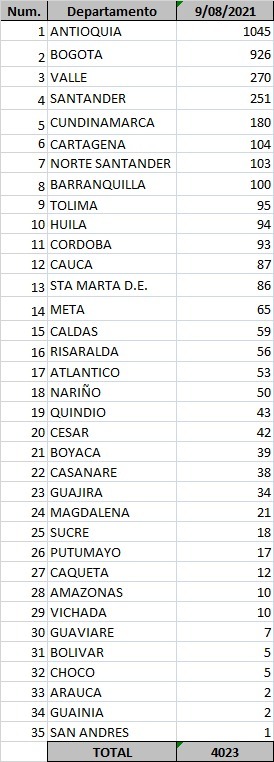 Actualmente Colombia tiene 49.669 casos activos; los recuperados son 4.656.709; mientras que los fallecidos que deja el virus son 122.601.
