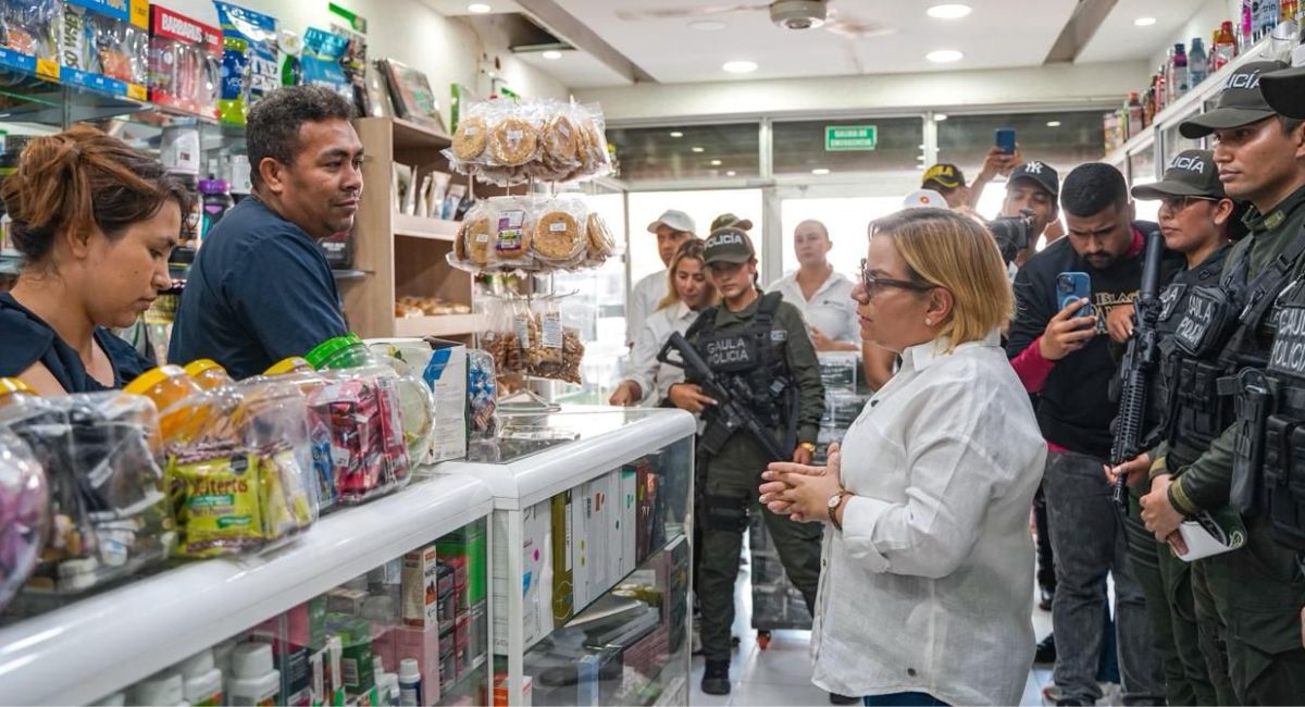 Durante el recorrido, Margarita Guerra invitó a los comerciantes a denunciar cualquier intento de extorsión a través de las líneas 147 (Gaula Militar) y 165 (Gaula Policía), reiterando que la denuncia oportuna es clave para desarticular estas estructuras criminales.