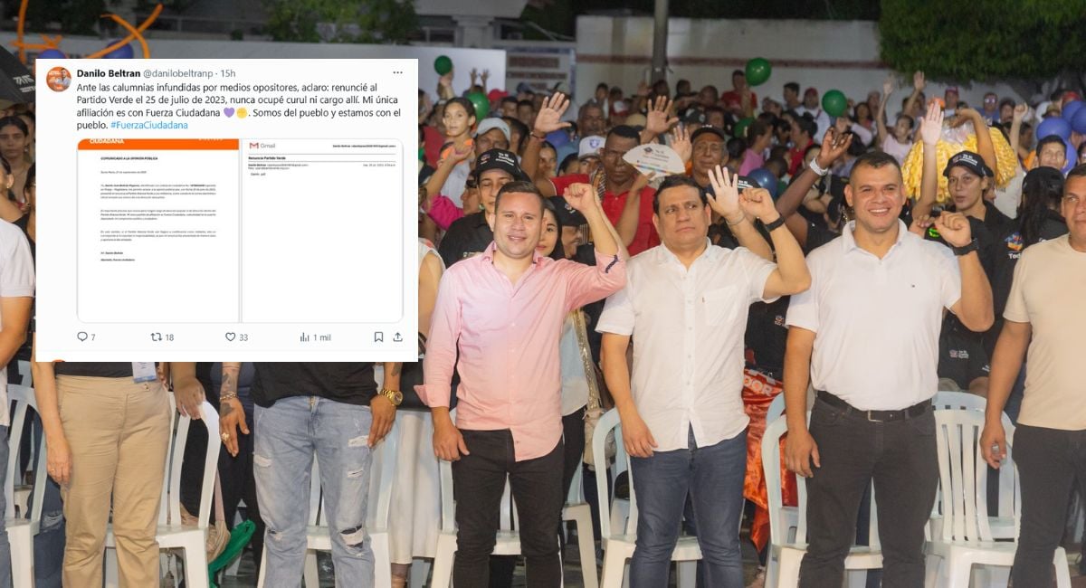 Ante la difusión de los certificados oficiales, Danilo Beltrán utilizó sus redes sociales para negar los hechos, y con un pantallazo de correo electrónico, asegurar que renunció al Partido Verde en 2023.
