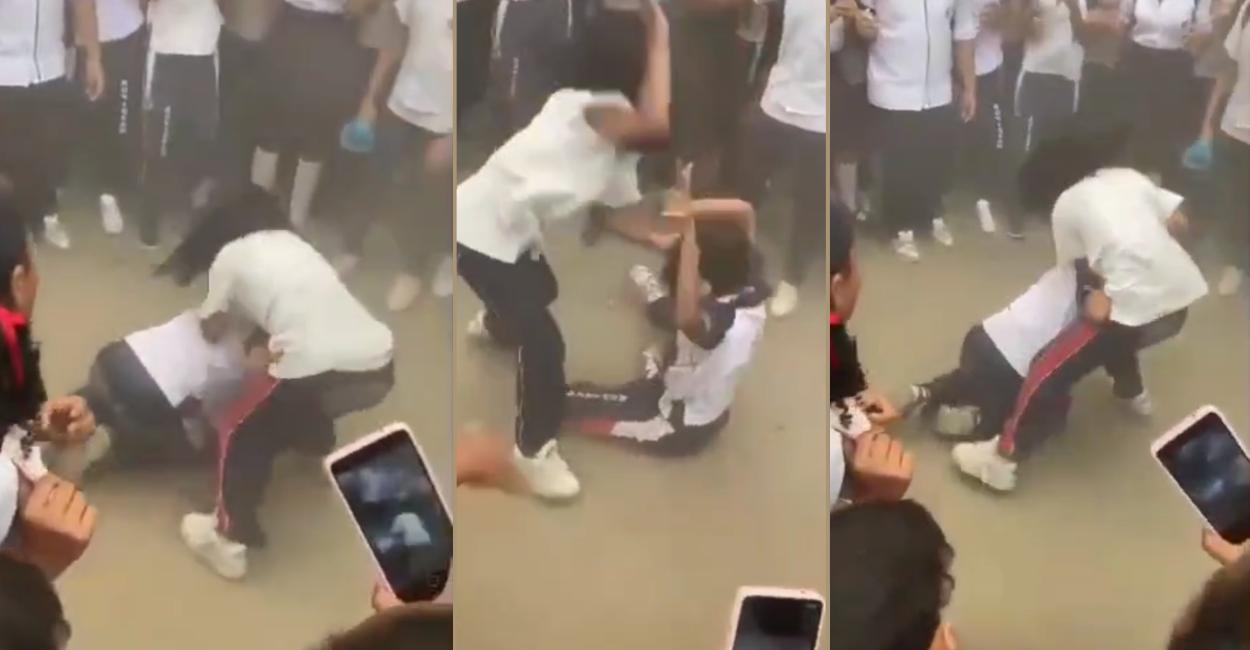 En las imágenes, que circulan en redes sociales, se observa cómo las jóvenes se agreden con golpes, patadas y jalones de cabello, mientras un grupo numeroso de compañeros rodea la escena. Durante la confrontación, una de ellas termina en el suelo, pero el enfrentamiento continúa.