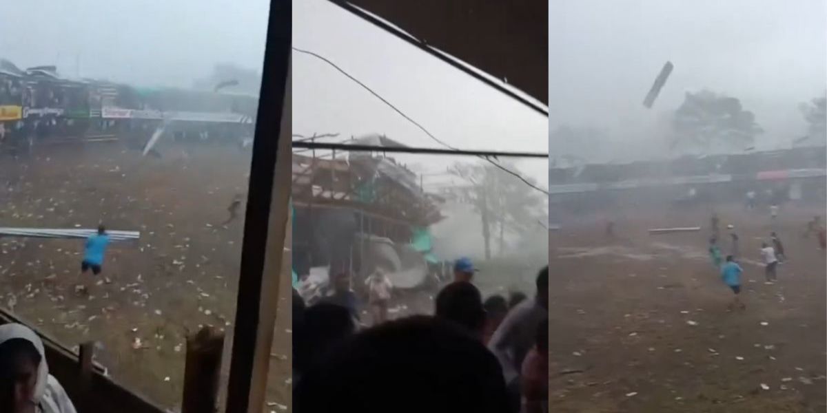 A través de videos difundido por asistentes a través de las redes sociales, se logra ver como la lluvia y los fuertes vientos desprendían las láminas, maderas y otros elementos; mientras que los presentes salían corriendo en busca de refugio.