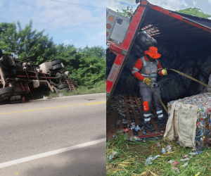 Accidente en la Troncal de Oriente: camión se salió de la vía y quedó volcado