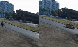 A través de las cámaras de vigilancia de un local comercial, quedó registrado un grave accidente en la Troncal del Caribe a la altura del barrio La Paz.