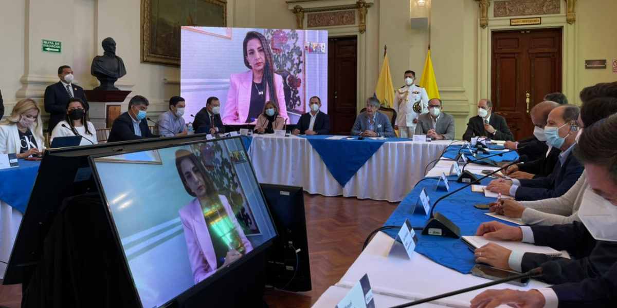 El presidente de la Asociación de Bananeros de Colombia (Augura), Emerson Aguirre Medina y la gerente del Instituto Colombiano Agropecuario (ICA), Deyanira Barrero León, se reunieron con el presidente de Ecuador, Guillermo Lasso Mendoza, para conocer las acciones que han implementado el Gobierno Nacional y el Gremio para contener el hongo Fusarium Raza 4 Tropical.