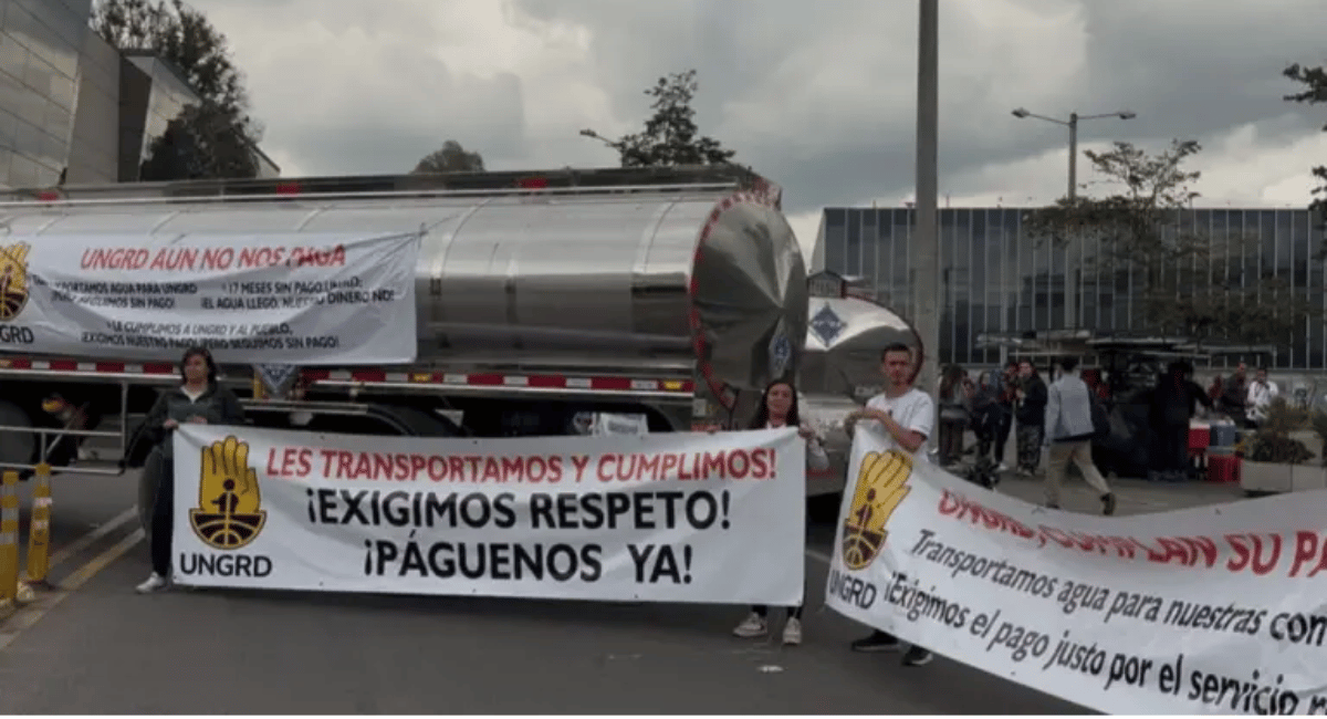 Un grupo de más de 100 conductores de carrotanques se concentró frente a las oficinas de la Unidad Nacional para la Gestión del Riesgo de Desastres (UNGRD) en Bogotá, para reclamar el pago pendiente por un contrato de transporte de agua ejecutado hace casi dos años. El servicio incluyó desplazamientos a zonas afectadas por emergencias en Córdoba, Sucre, Buenaventura y Bolívar.
