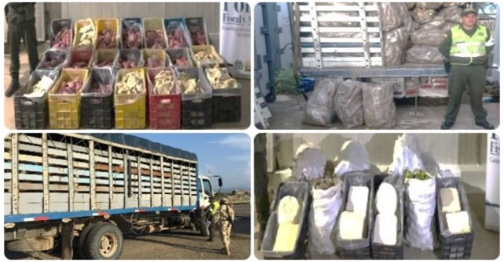 En el sector “Puente Viejo”, del mismo municipio, los uniformados incautaron 11.7 toneladas de trigo, 4.6 toneladas de granadilla y 7.5 toneladas de pata de res, por un valor de $48 millones.