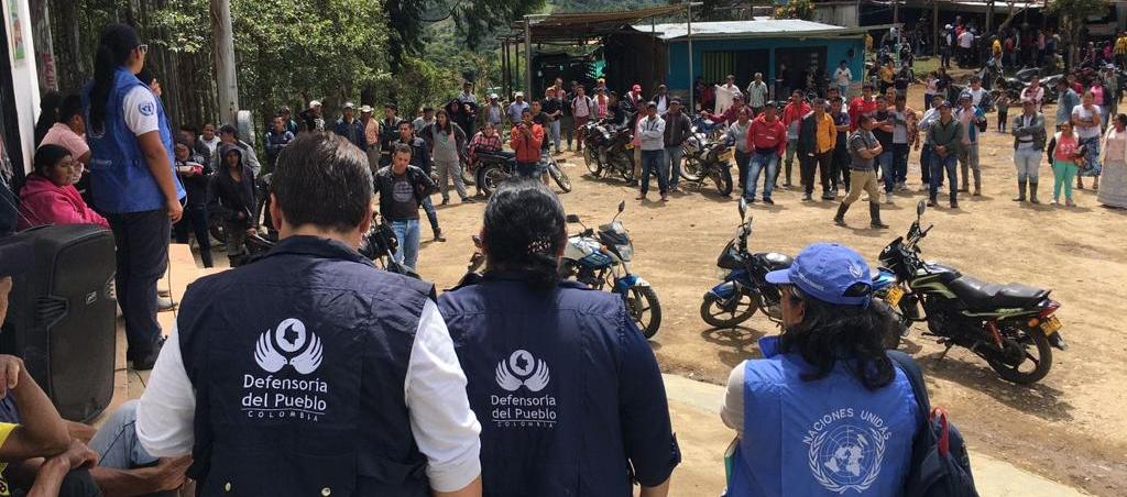 En la misión humanitaria que continuará en el municipio de La Plata en estricto monitoreo hasta garantizar tanto la llegada de la ayuda humanitaria como el retorno de las comunidades a sus territorios, participan, en representación de la Defensoría del Pueblo, además de la Regional Huila, la Dirección Nacional de Atención y Trámite de Quejas, la Delegada para los Derechos de la Población en Movilidad Humana, la Delegada para la Asesoría y Orientación a las Víctimas del Conflicto Armado y la Delegada para la Prevención de Riesgos y Sistema de Alertas Tempranas, con el acompañamiento de la Oficina del Alto Comisionado de las Naciones Unidas para los Derechos Humanos en Colombia.