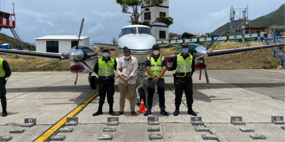 En San Andrés fue incautada por la Policía 446 kilogramos de cocaína que fueron encontrados en una avioneta, la cual había partido desde el aeropuerto Guaymaral en Bogotá y está registrada a nombre de Interandes Helicópteros S.A.S, empresa de la que Miguel Jaramillo Arango, esposo de Alejandra Azcárate, es el representante legal.