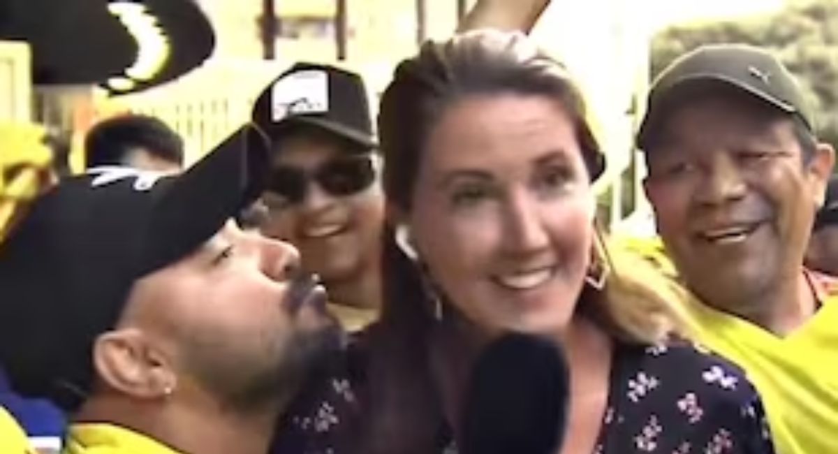 Indignante: hincha colombiano intentó besar a periodista durante una transmisión en vivo