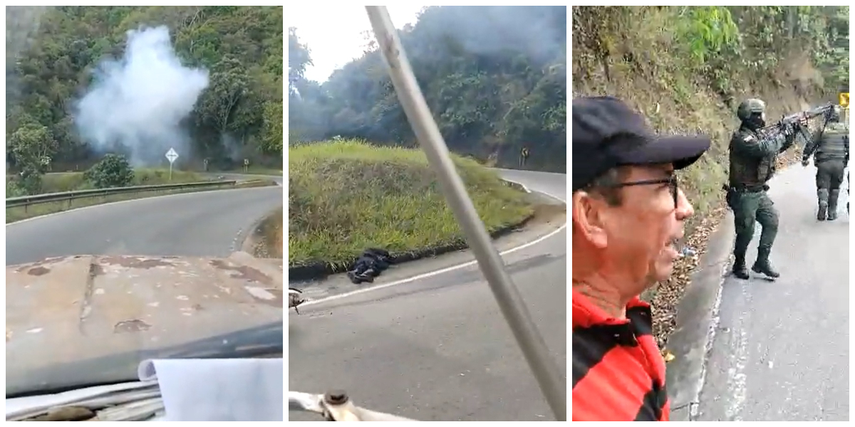 Allí fue cuando Trigos Vanegas, que iba en una moto escoltando al camión, recibió los impactos y cayó herido al suelo, y grabó un video mientras estaba herido.