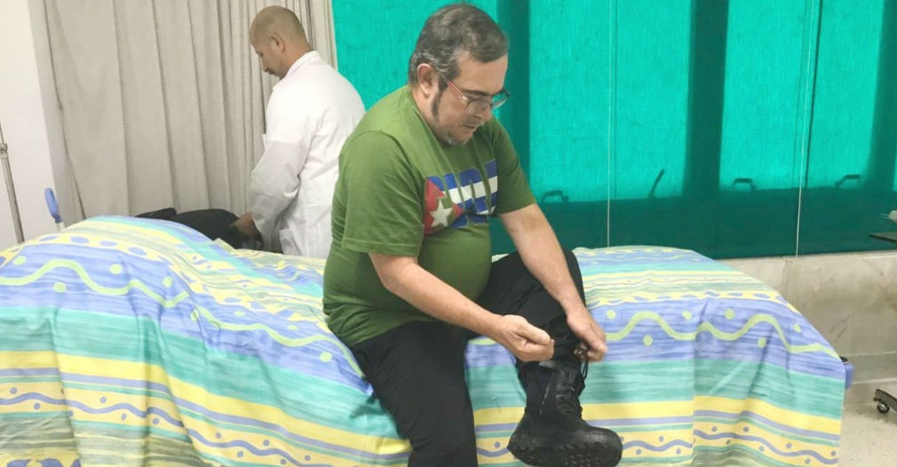 "Timochenko" publicó junto a sus palabras una fotografía en la que se le ve apoyado en una cama de hospital mientras se anuda los cordones de las botas, y ataviado con una camiseta con la bandera cubana.