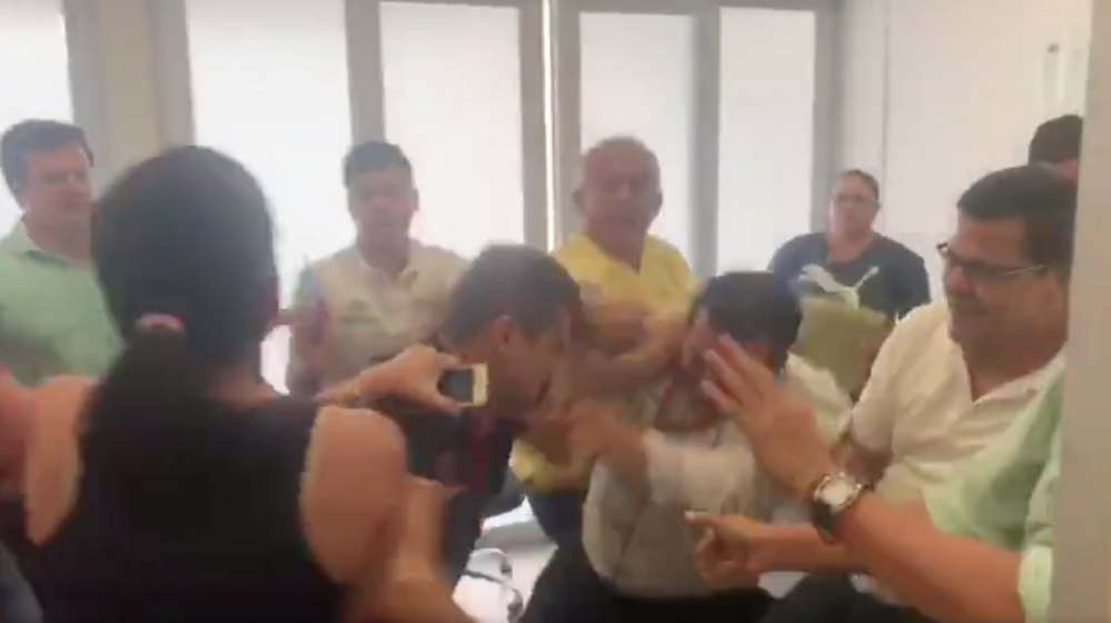 La bochornosa trifulca ocurrió el sábado y el video del suceso fue publicado por el senador Antonio Sanguino, en su cuenta oficial de Twitter.