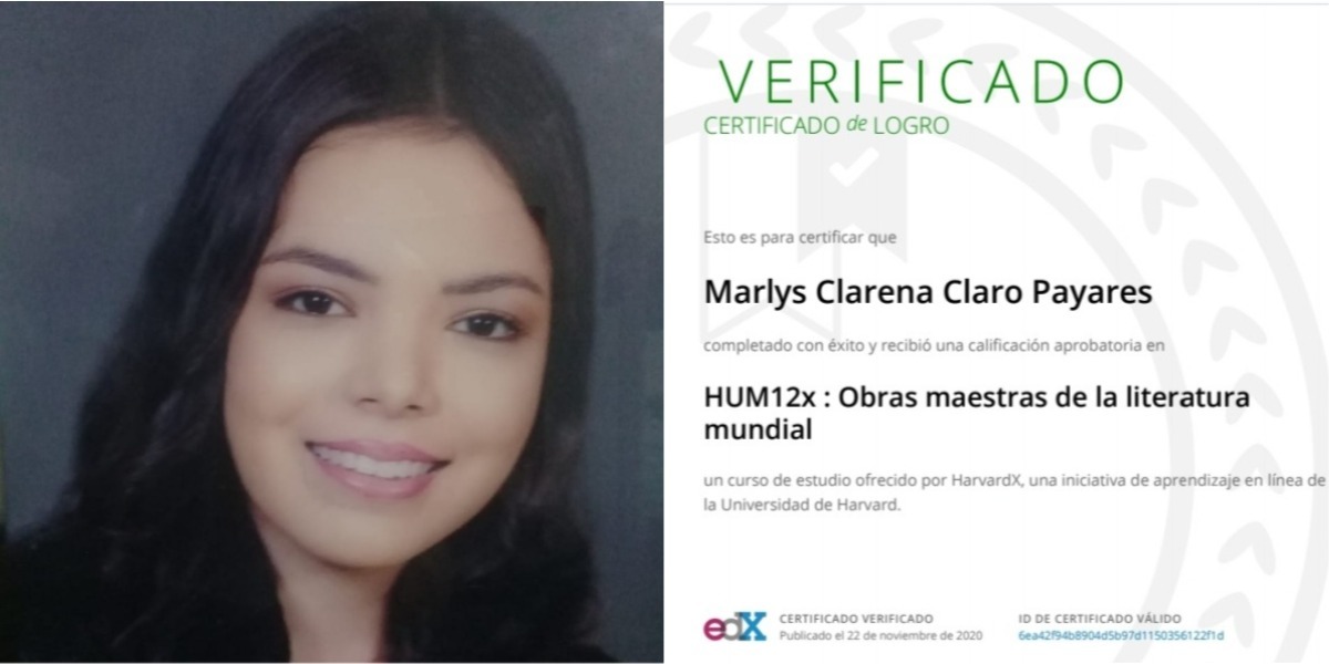 Es precisamente todo ese empeño, esfuerzo, dedicación y amor, lo que la llevaron a obtener un excelente puntaje en un curso de estudio ofrecido por HarvardX, una iniciativa de aprendizaje en línea de la Universidad de Harvard.