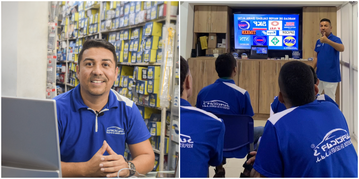 Su dedicación a la formación no se limita solo a los empleados de su empresa, sino que abarca a estudiantes del SENA interesados en aprender sobre repuestos, marcas, modelos y equivalencias de autopartes.