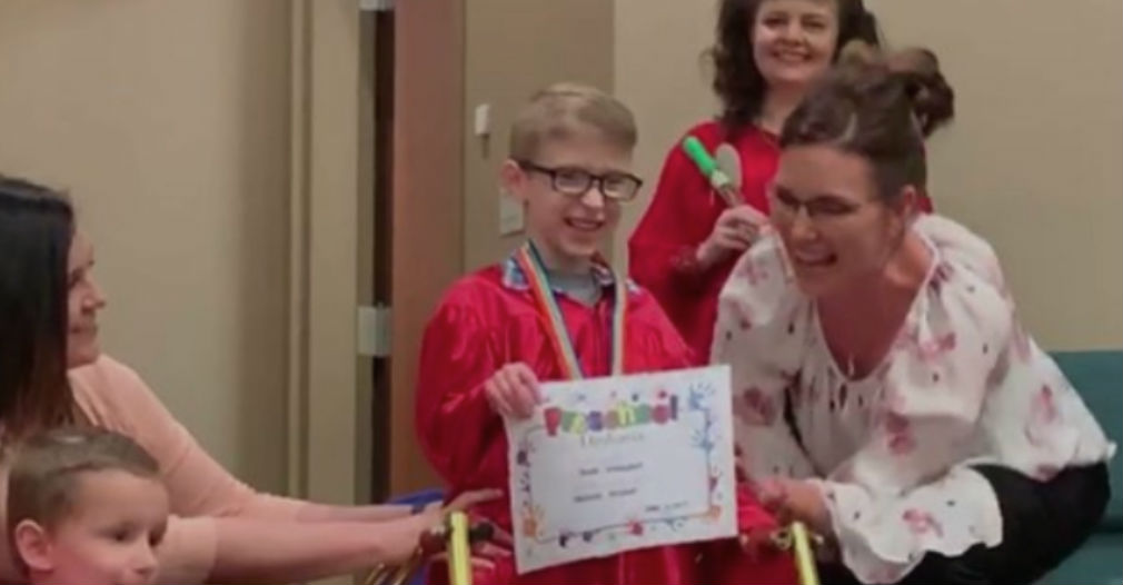 #Video Niño con discapacidad camina por primera vez para recibir su diploma de preescolar