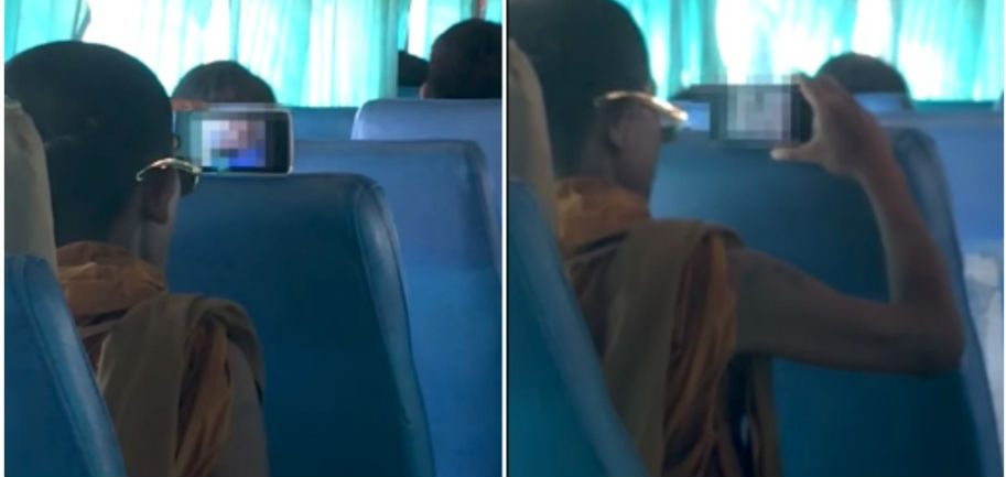 En Tailandia, un monje budista fue sorprendido mirando videos pornográficos desde su celular mientras viajaba en un bus. Un pasajero se percató del curioso hecho y decidió grabarlo.