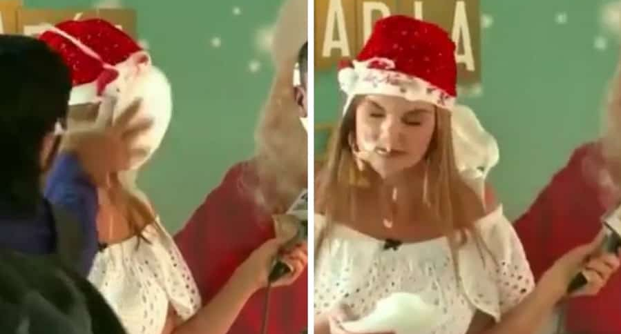 Stevenson realizaba una entrevista a uno de los participantes del concurso ‘Aguinaldo y pastelazo’, en el que las personas cuentan chistes y el mejor de ellos recibe 100 mil pesos. Mientras que, los perdedores se llevan un pastelazo en el rostro.