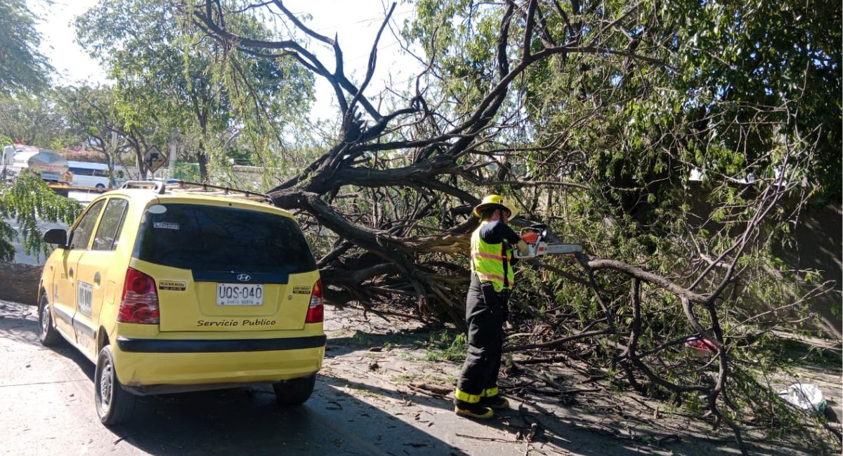 Según indicó el Cuerpo de Bomberos Voluntarios de Santa Marta, el árbol cayó sobre un vehículo tipo taxi, y aunque dejó graves daños sobre el automóvil, por fortuna el conductor no resultó con heridas de gravedad.