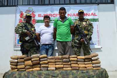 Mediante un puesto de control realizado en la avenida Troncal del Caribe frente al centro comercial Zazué en la ciudad de Santa Marta tropas del Gaula Militar del Magdalena de la Segunda Brigada Orgánica de la Primera División del Ejército Nacional, capturaron a dos personas que transportaban droga en un vehículo particular.