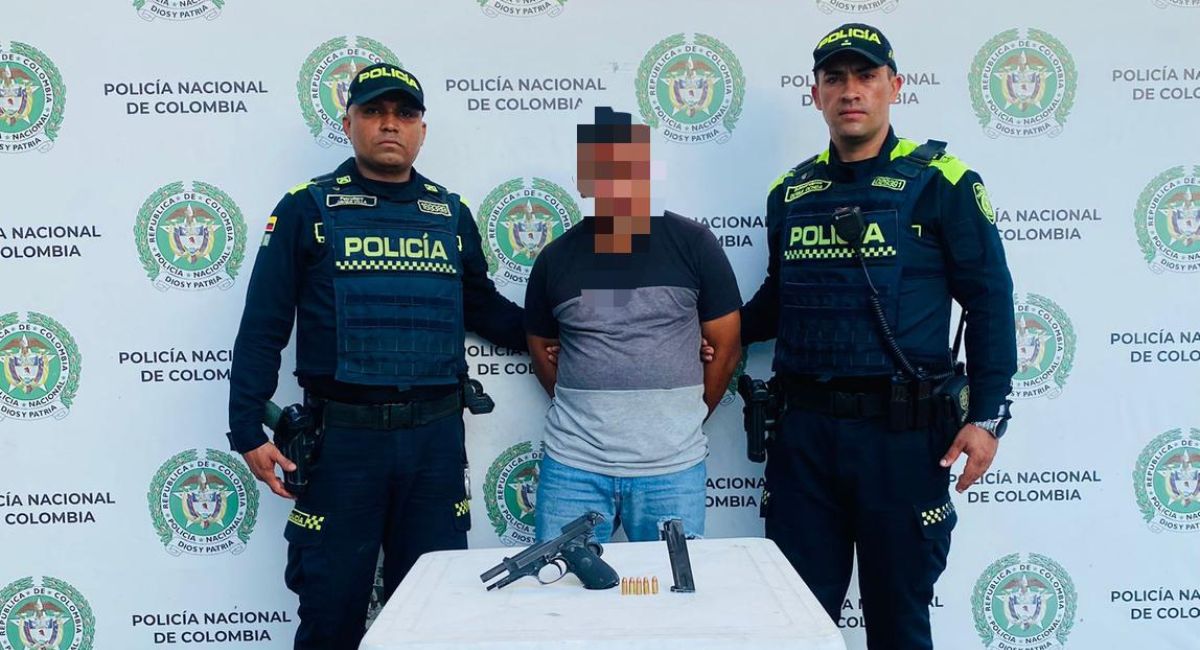 Mediante labores de registro y control realizadas por uniformados del modelo del servicio de policía adscritos a la Estación de Policía Bastidas, fue capturado alias ‘Nariz’ en el barrio Santa Ana, por el delito de fabricación, tráfico o porte de armas de fuego, accesorios, partes o municiones.