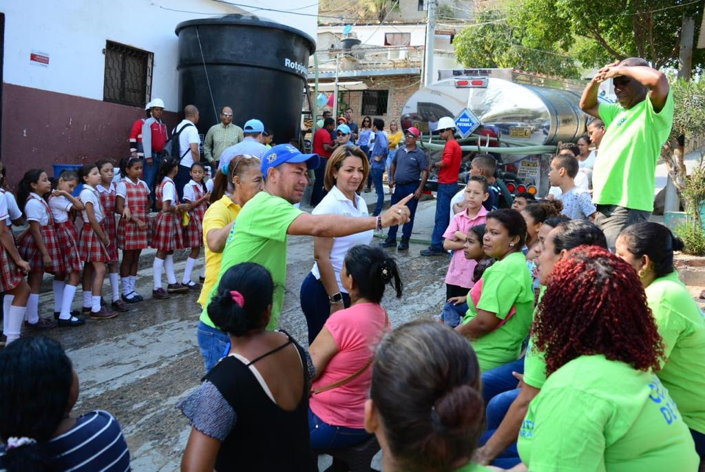 La gerente de la Essmar, Ingrid Aguirre, acompañó en la mañana de este miércoles  a la comunidad del barrio Pastrana en la puesta en funcionamiento del tanque para almacenamiento del agua potable, que será llenado con carrotanques dos veces por semana y beneficiará a  cerca de 400 residentes del sector. .