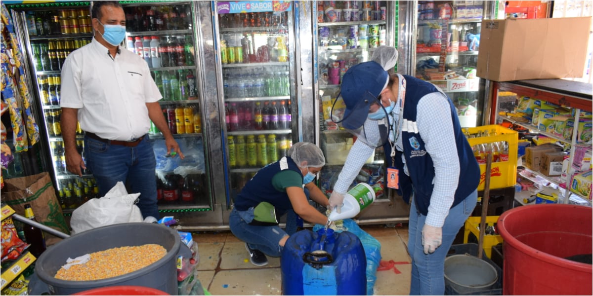 Adriana Monroy, referente del Programa de Alimentos y Bebidas, detalla que una vez “Realizadas las visitas en tres de los establecimientos de expendio de alimento y bebidas señalados, evidencian la comercialización de estos productos a granel a lo que proceden a la aplicación de la medida sanitaria de seguridad consistente en la desnaturalización y retiro de 54 kilos de leche en polvo y así mismo de 19 litros de aceite”.